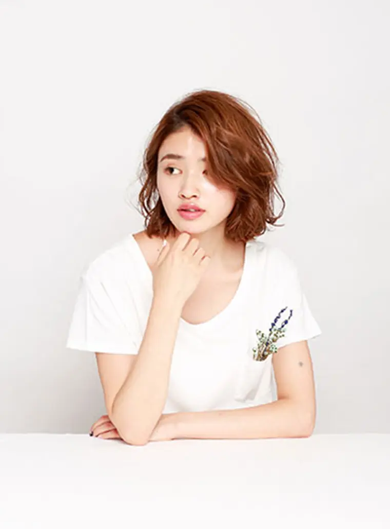 全体的には重めのヘアスタイルでありながら、リッヂの利いたウェーブでヘアスタイルを立体的な印象に。